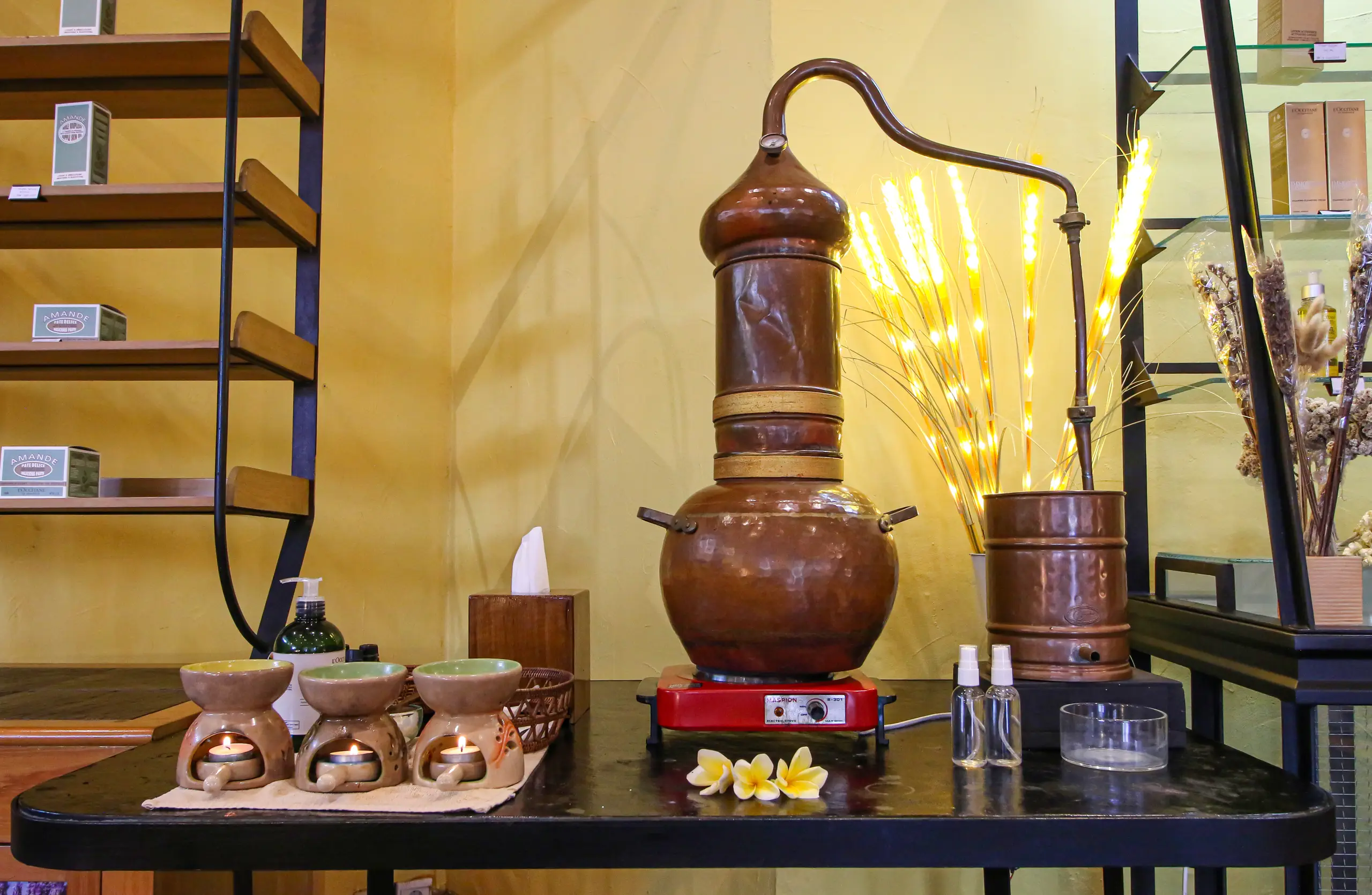 Forget the sharp sting of alcohol-based sprays. Our solid perfumes are born from the alembic still—a vessel of transformation used for centuries to capture the true soul of a plant.